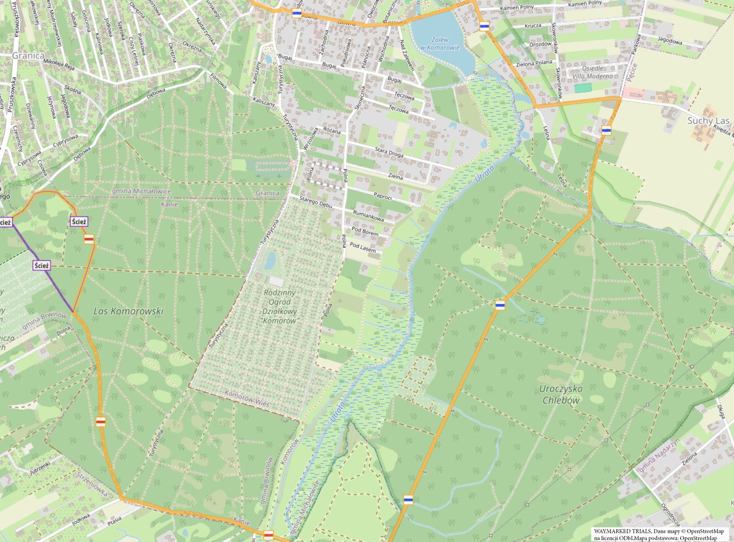 Las Komorowski i Las Uroczysko Chlebów to w gruncie rzeczy jeden kompleks leśny, przedzielony łąkami doliny Utraty. Jego granice niewiele zmieniły się od połowy wieku XIX, co widać na dawnych mapach. Od północy graniczy obecnie z gęstą zabudową Komorowa, Nowej Wsi i Pęcic - oraz bliskiego Pruszkowa.