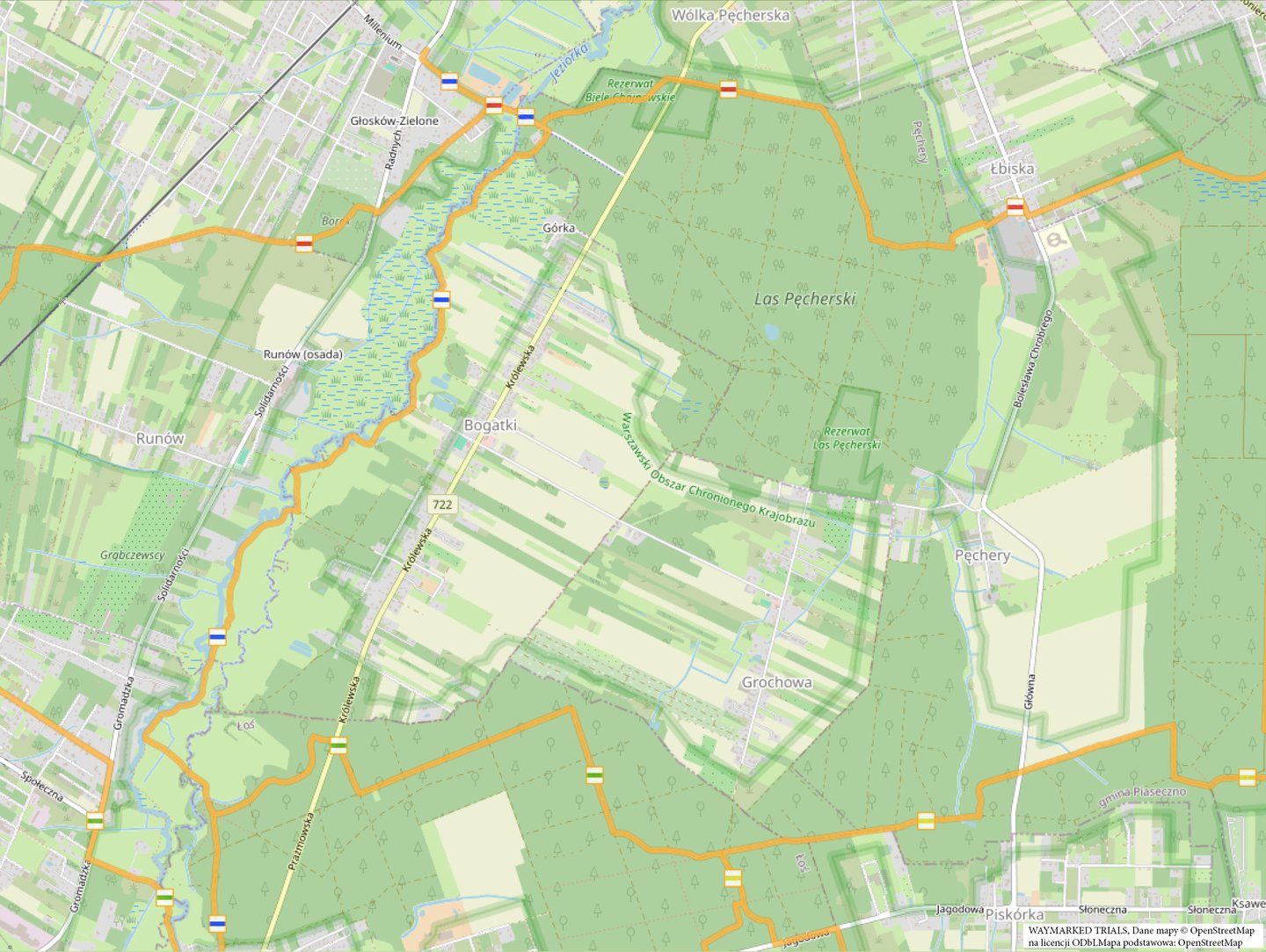 To wyjątkowo długa i wyjątkowa piękna trasa przez Chojnowski Park Krajobrazowy. Wielogodzinny marsz przez lasy mieszane Leśnictwa Bogatki i łąki szerokiej i pustej doliny Jeziorki to zdecydowanie najciekawsza propozycja wycieczki z kijami na południe od Warszawy. Pokonanie liczącej blisko 15 km trasy będzie doskonałym przygotowaniem przed planowaną wyprawą na górskie szlaki, tym bardziej, że tutejsze lasy liściaste z jaworami i grabami przywołują klimat bukowych lasów karpackich.
